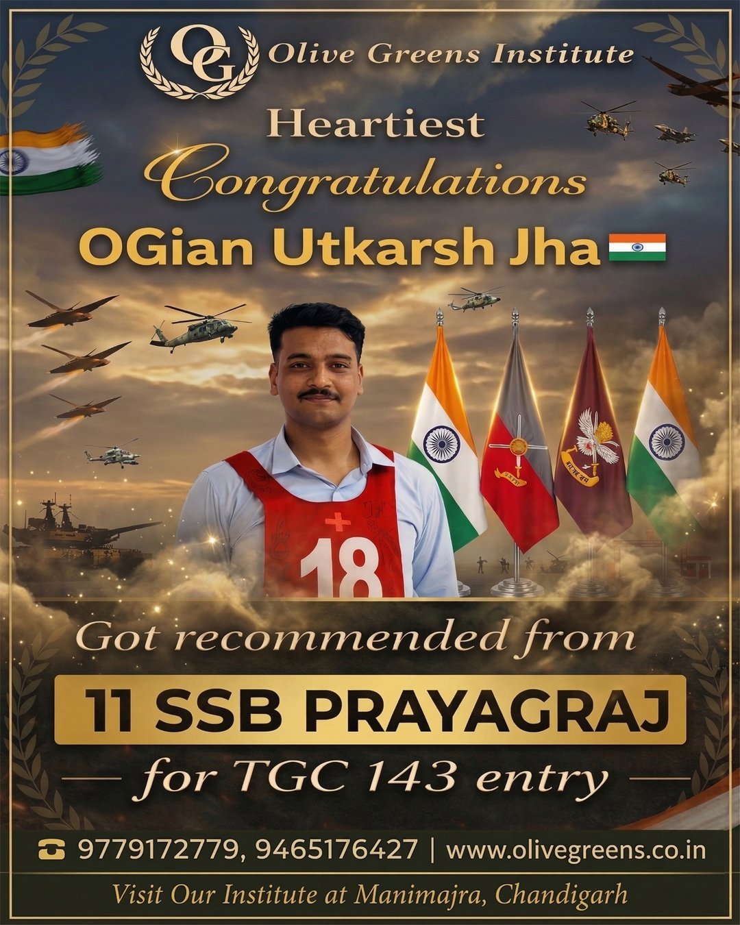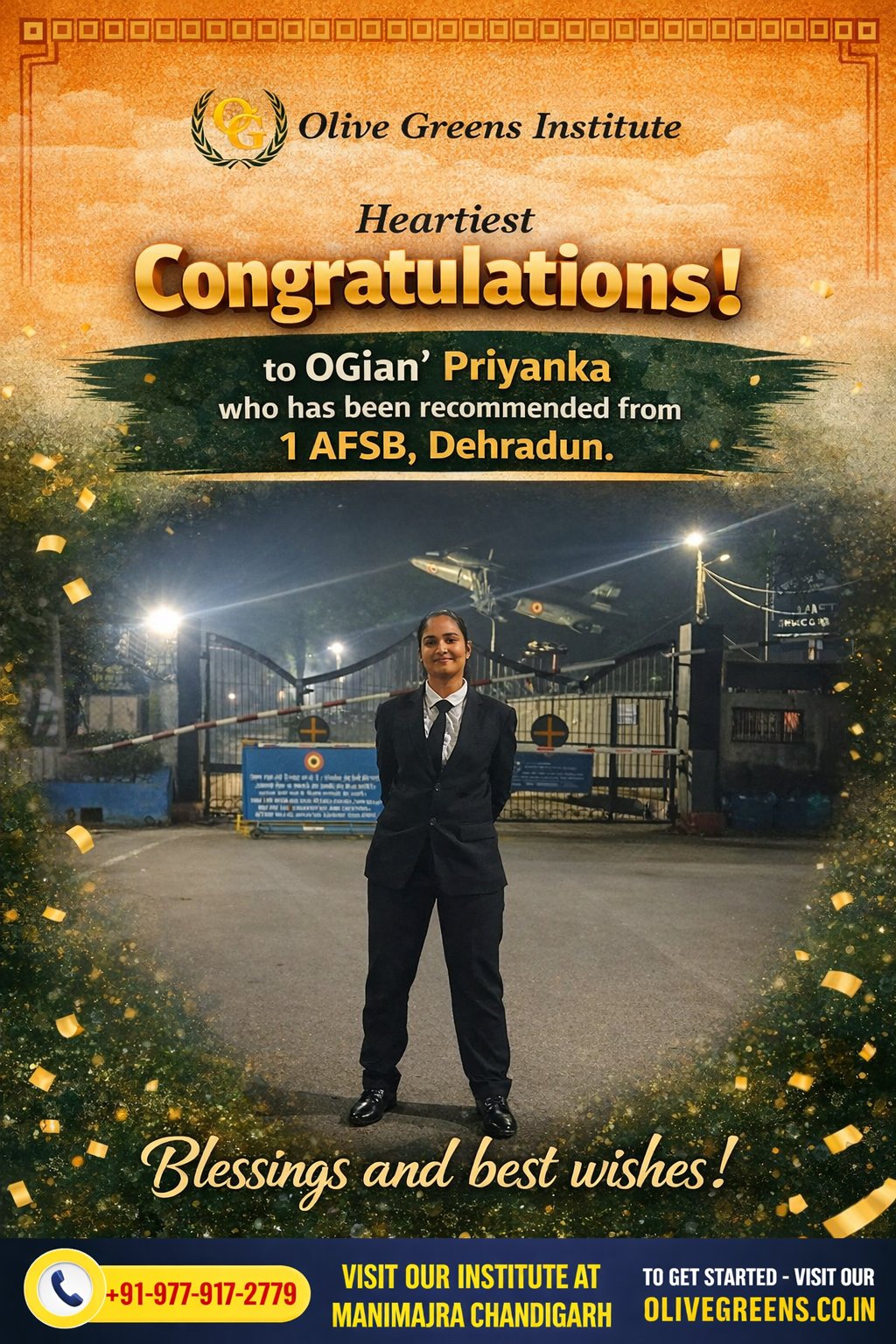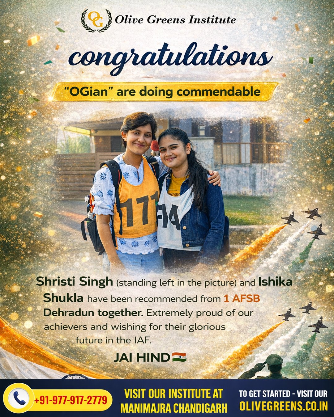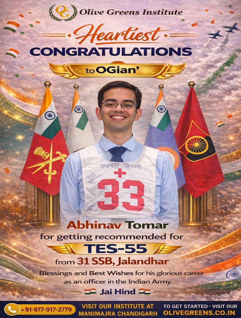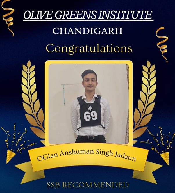 At Olive Greens Institute, success is not just a result – it’s a tradition. Our successful candidates have consistently proven their excellence in various SSB interviews including NDA, CDS, AFCAT and Technical Entries. With expert mentorship, real-time SSB training and personalized guidance, we have helped hundreds of aspirants achieve their dream of becoming officers in the Indian Armed Forces.