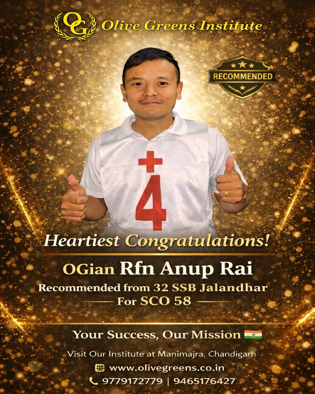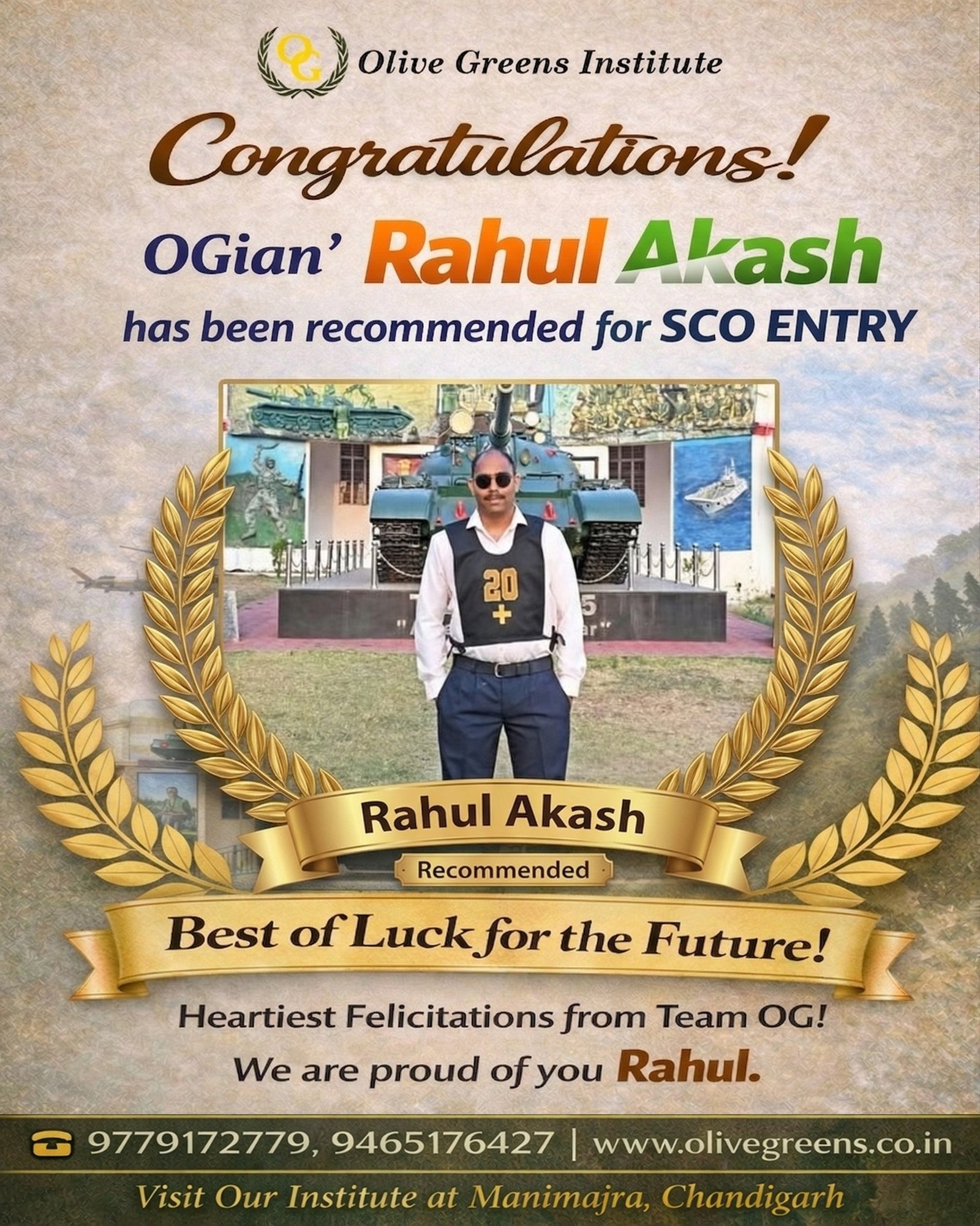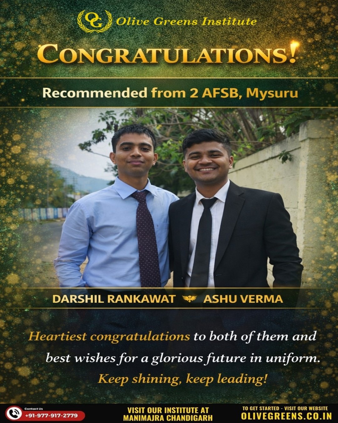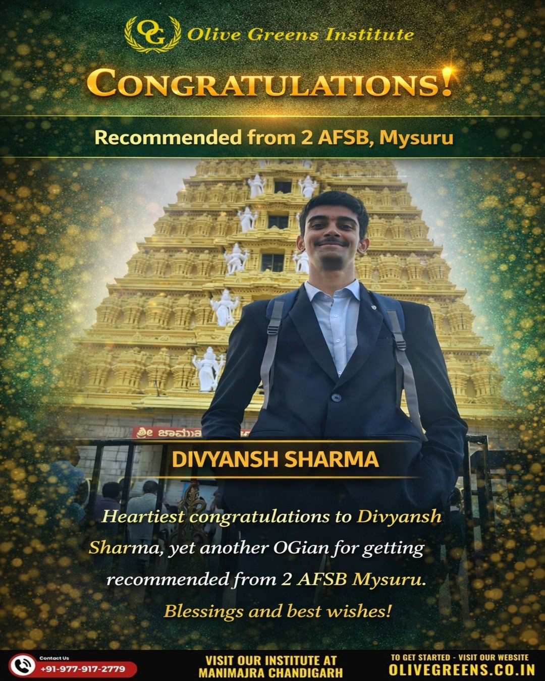 At Olive Greens Institute, success is not just a result – it’s a tradition. Our successful candidates have consistently proven their excellence in various SSB interviews including NDA, CDS, AFCAT and Technical Entries. With expert mentorship, real-time SSB training and personalized guidance, we have helped hundreds of aspirants achieve their dream of becoming officers in the Indian Armed Forces.